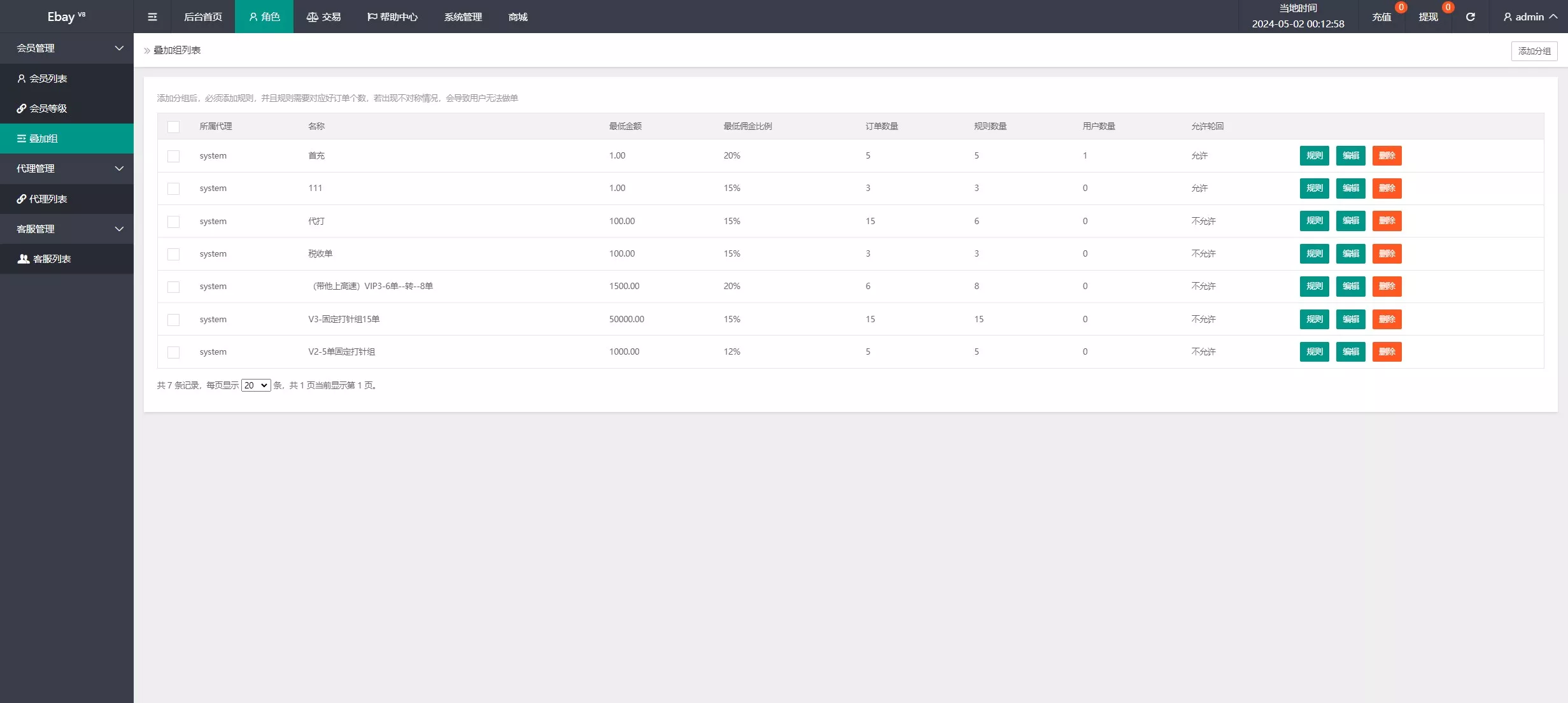 盘口底层逻辑跟橘色一样的,针对不同的客户建立不同的分组,再根据分组内不同客户的情况进行打针设置,UI不同,细节有一定的差异,模式玩法一样。