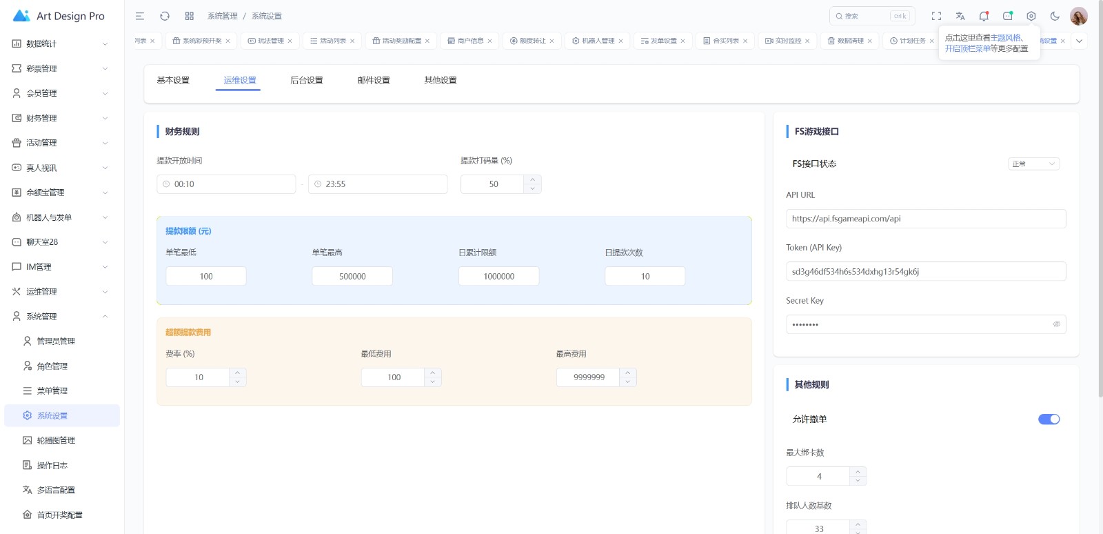 搭建起来跑了一下,东西还是不错的,有私彩系统彩(PC28、六合彩、快三、时时彩等游戏)、娱乐城(PG电子、体