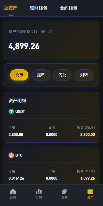 币币、合约、秒合约、质押、助力贷、理财、行情控制等功能
